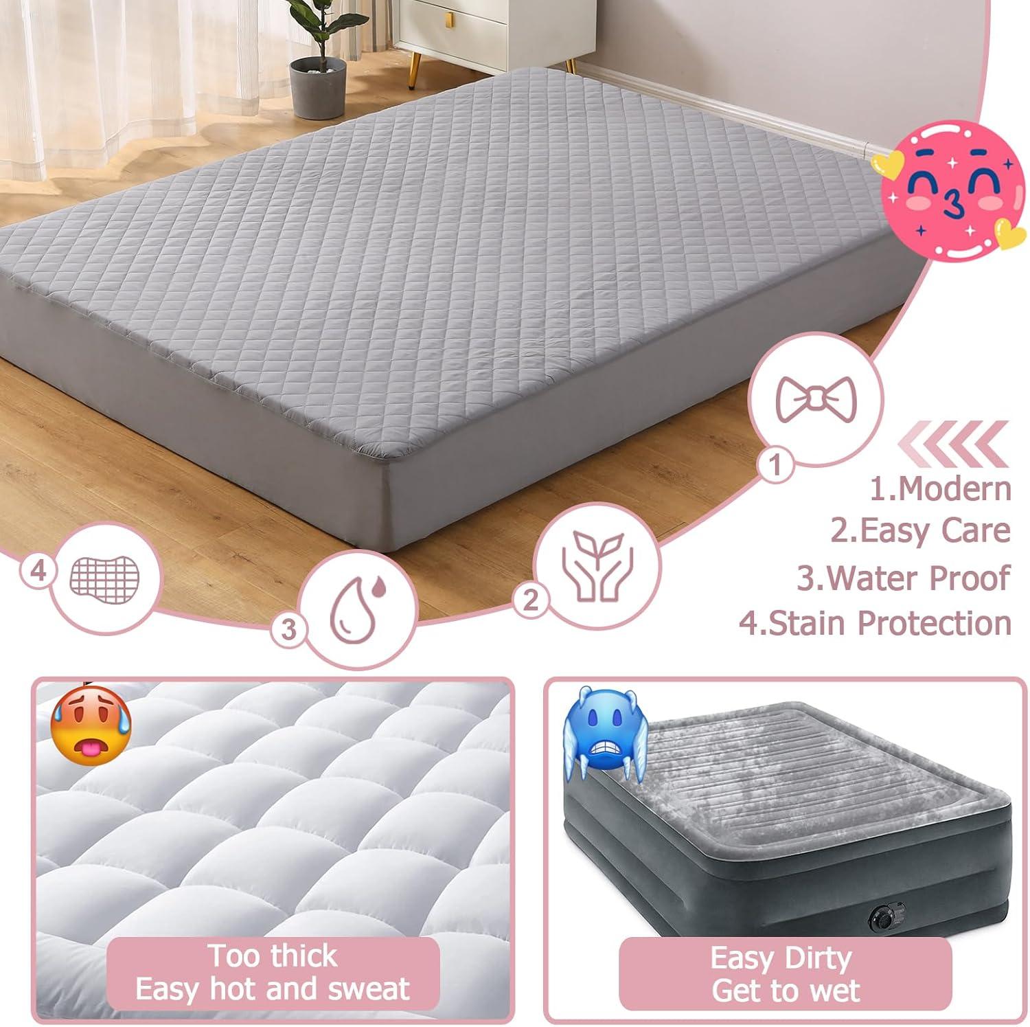 Stain & Spill Protection — Without a air mattress pad protector, your air mattress trends to get wet and dirty. With a thick air mattress pad plus plastic air mattress without breathability, you'll be hot and sweat and it's not protective for spilled accidents. Bedecor Air mattress pad does well at keeping your mattress from liquids, stains, skin oils to keep dry and clean while bringing you a cozy sleeping.