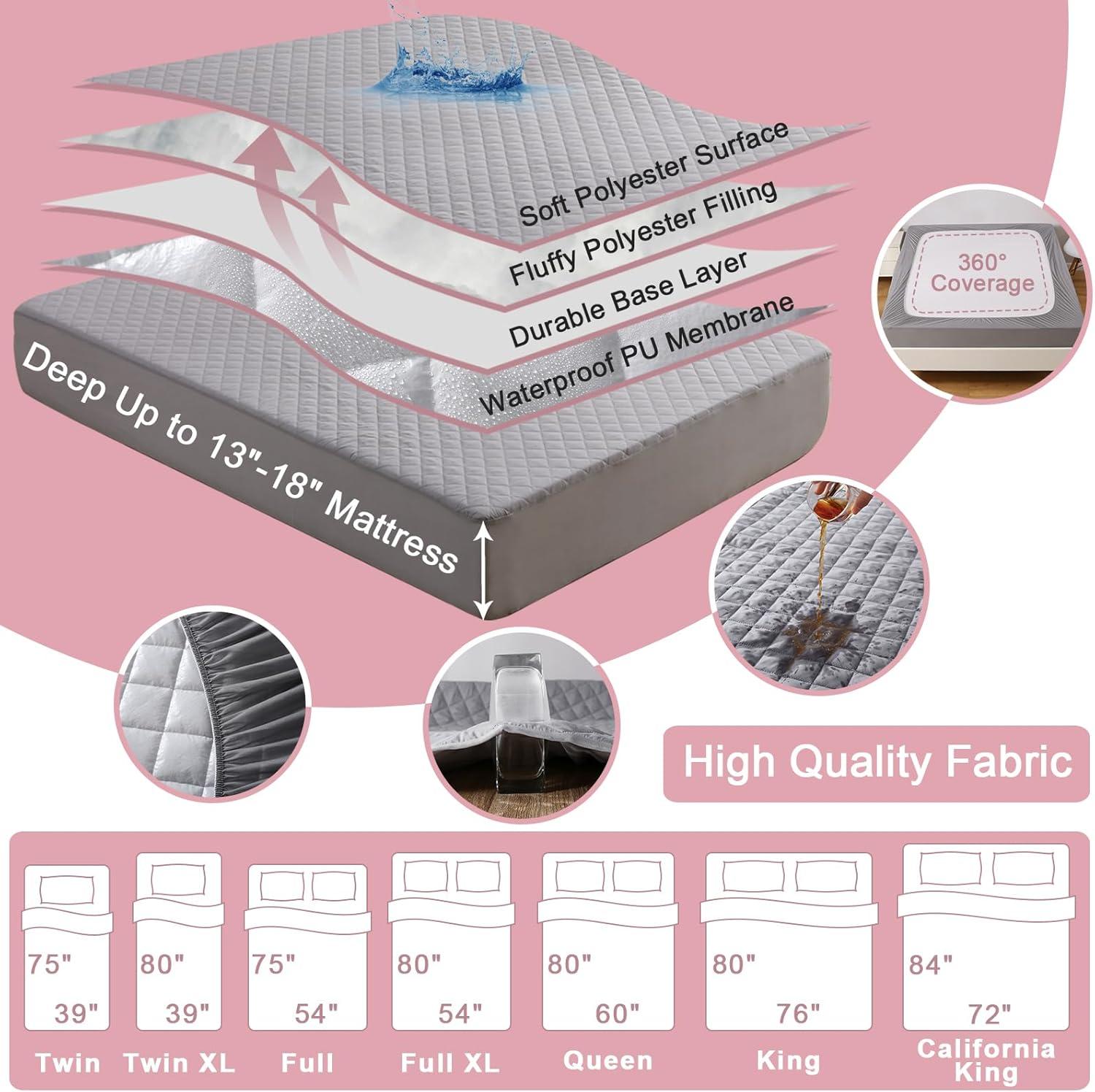 Extra Aborsbption & Quilted Design — The protective mattress topper full xl with filler could absorb more liquid than a simple mattress protector and is good for potty training, which is also ideal for allergy sufferers, like babies and seniors. The quilted design is to prevent the filler from running after many washes.